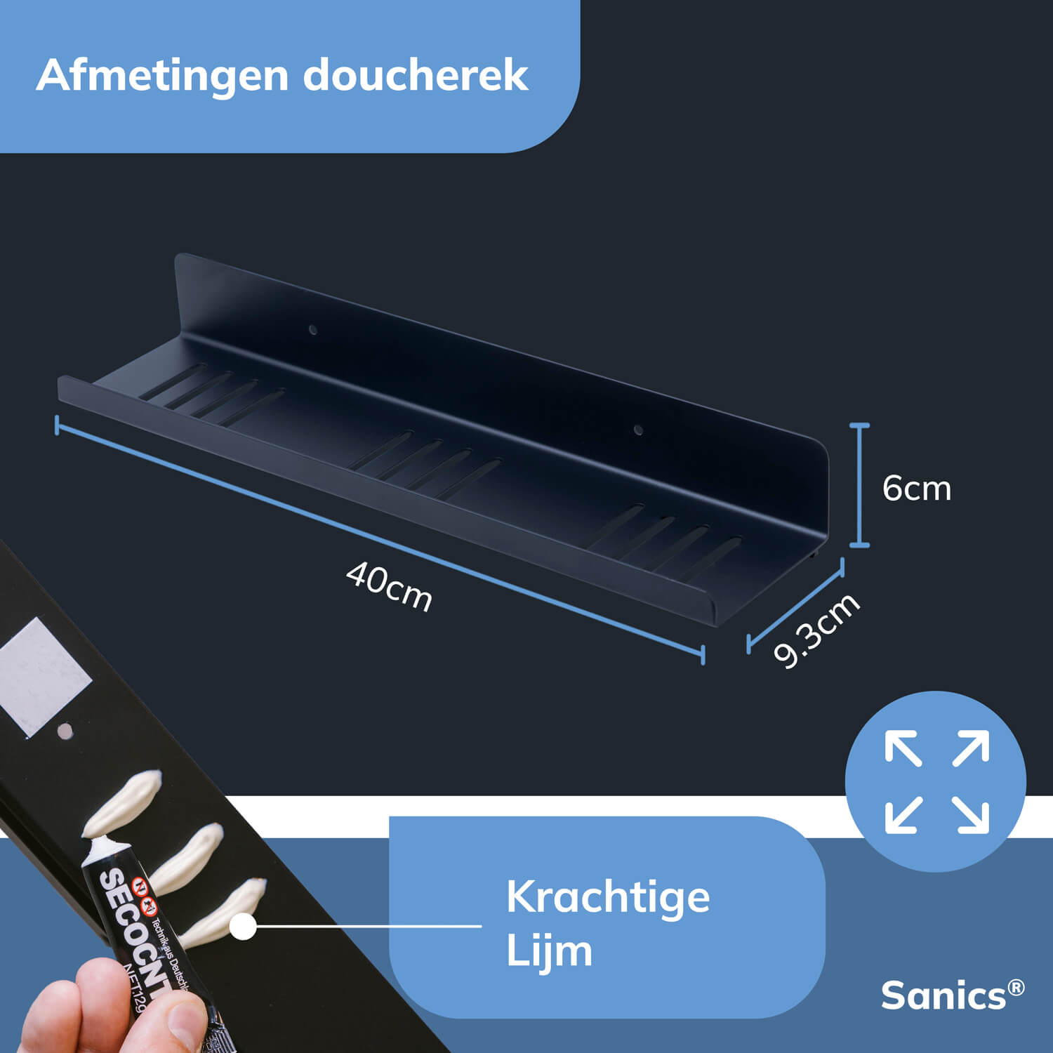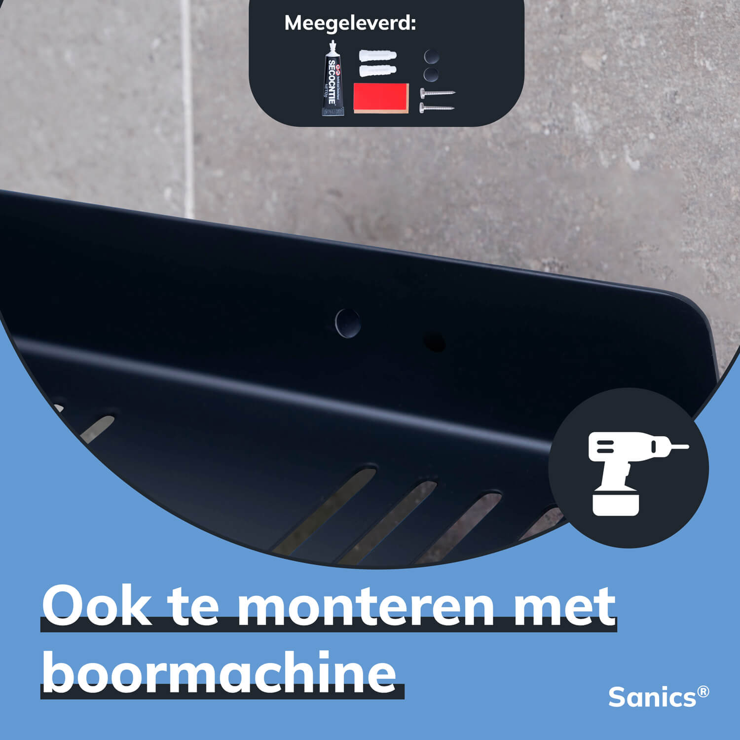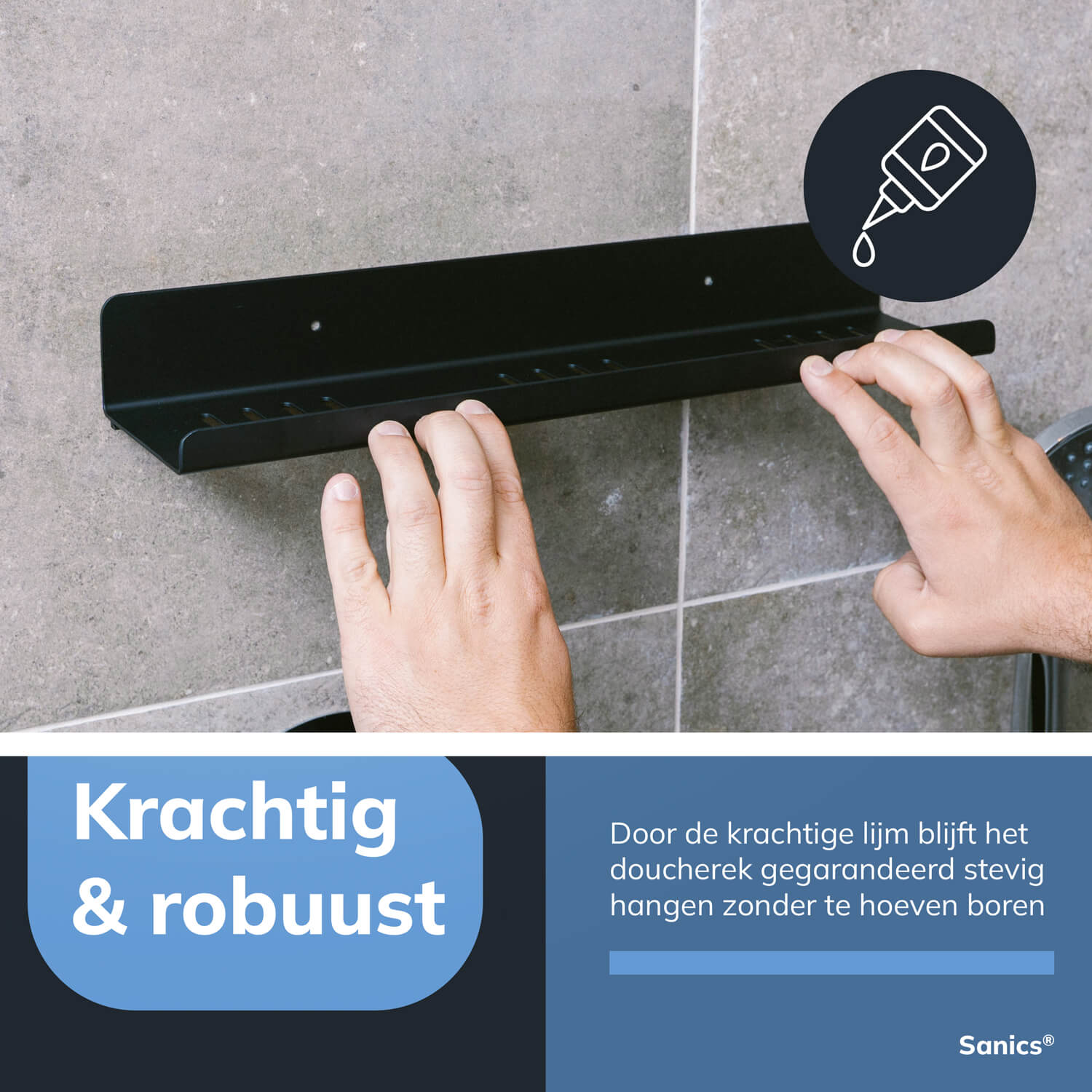 Doucherek zonder boren – Zelfklevend badrek – Hangend Douchebakje – Douchemand – Doucherekje Zwart – Doucherekjes 40CM