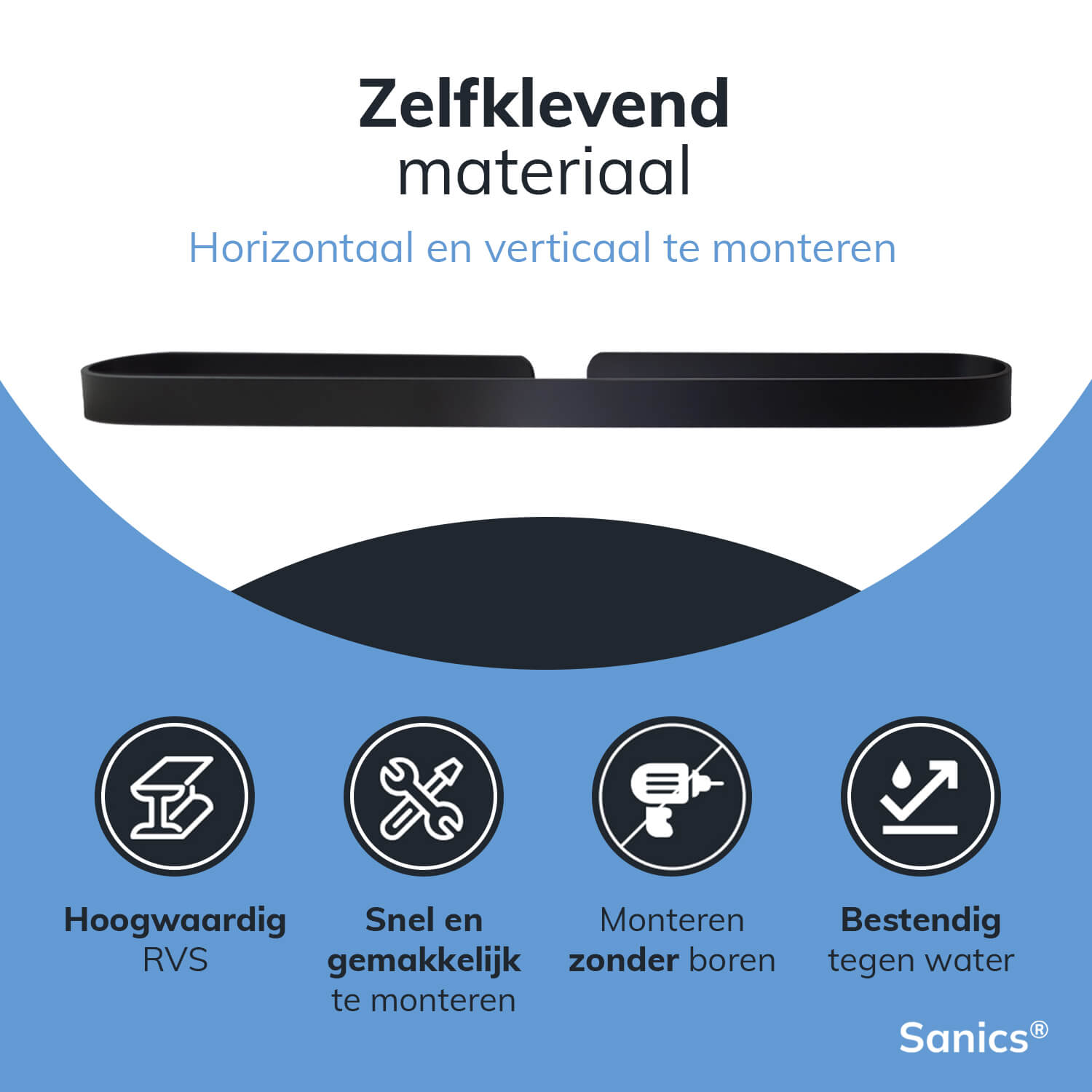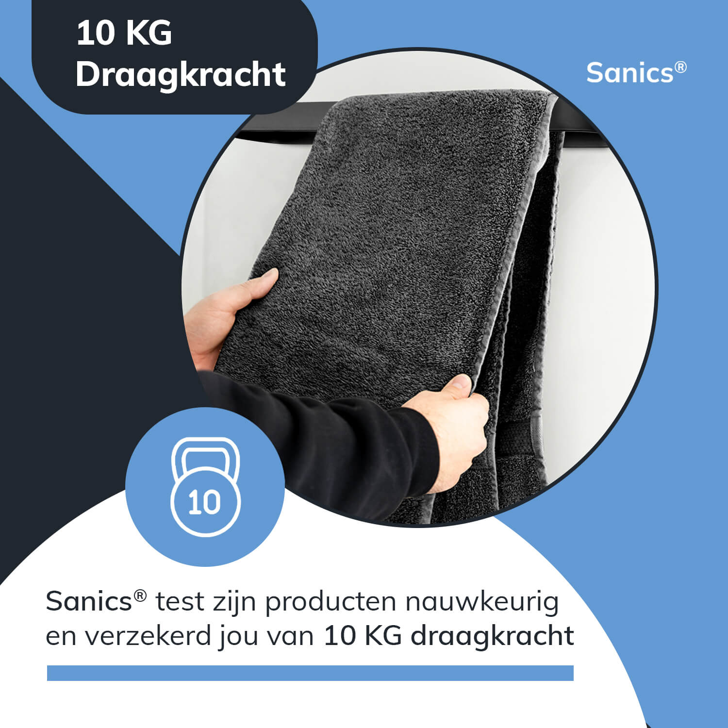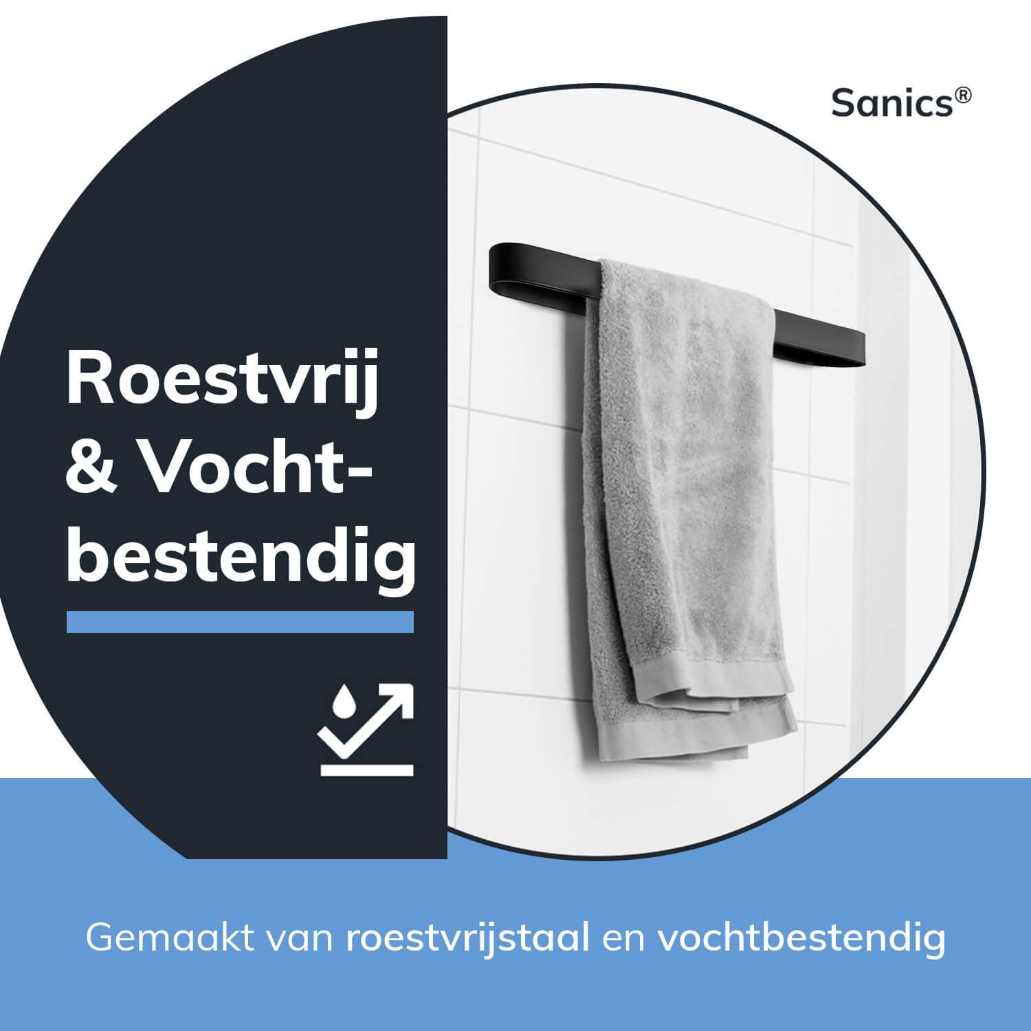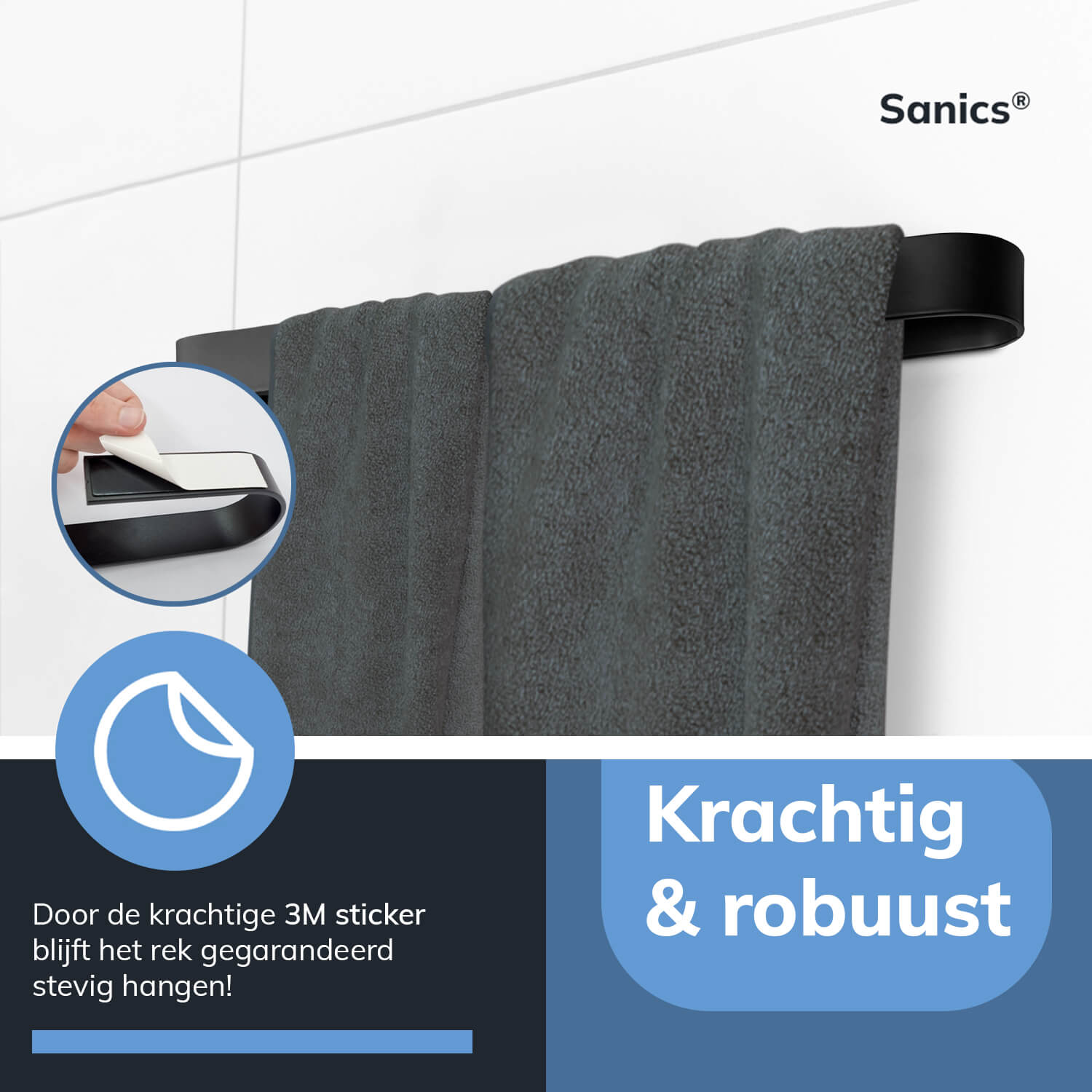 Wil jij ook je handdoekstang ophangen zonder je muur te beschadigen? Deze zwarte Sanics handdoekstang is door middel van de meegeleverde lijmset zeer eenvoudig te bevestigen. Door deze eenvoudige methode hangt je handdoekstang al binnen 1 minuut zonder dat je hierbij gereedschap nodig hebt! De stang blijft ook bij jarenlang gebruik stevig vastzitten.