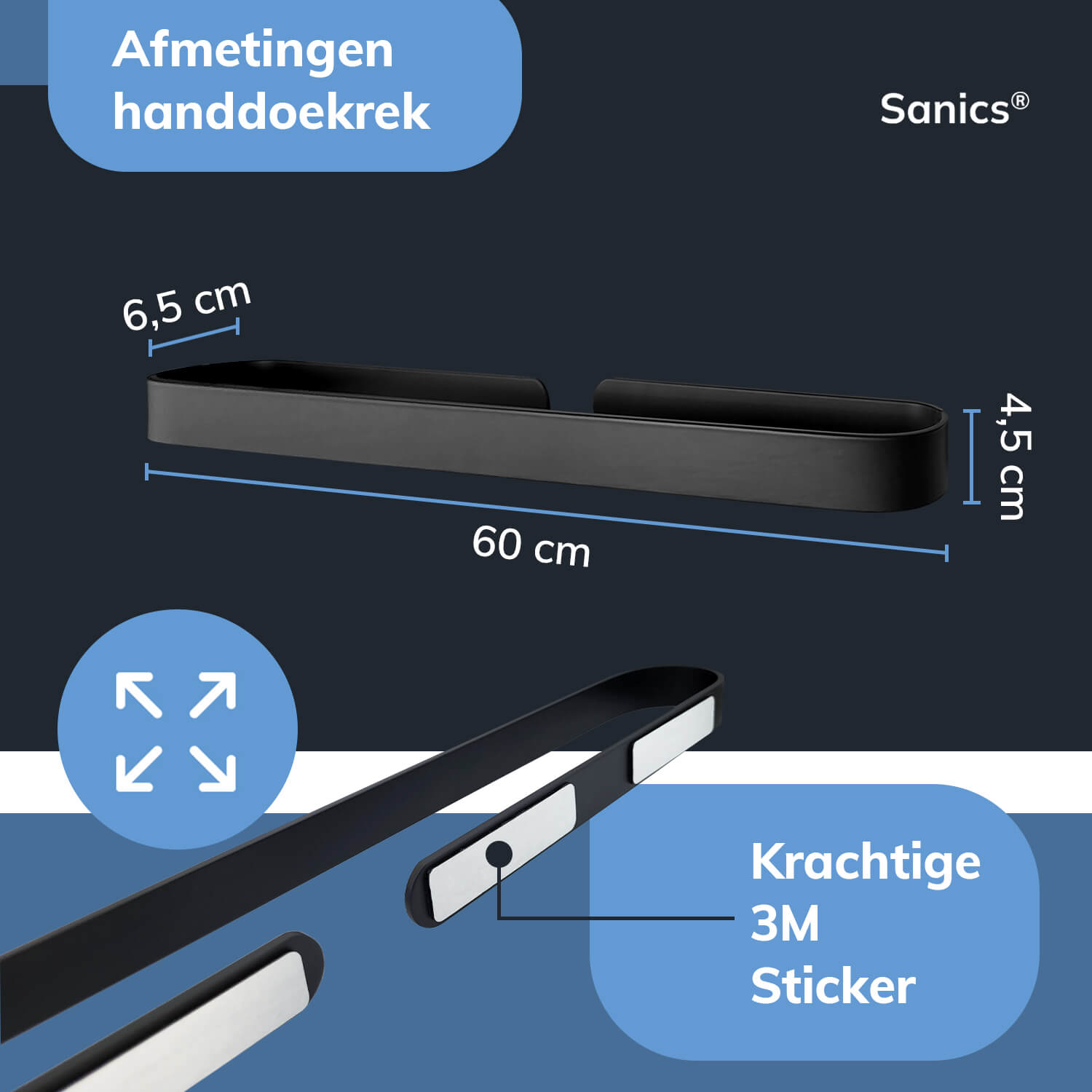 Handdoekrek Zonder Boren Zwart 60 CM – Handdoekhouder – Handdoekenrek Badkamer of Keuken – Handdoekstang Zelfklevend – Handdoekhouders RVS