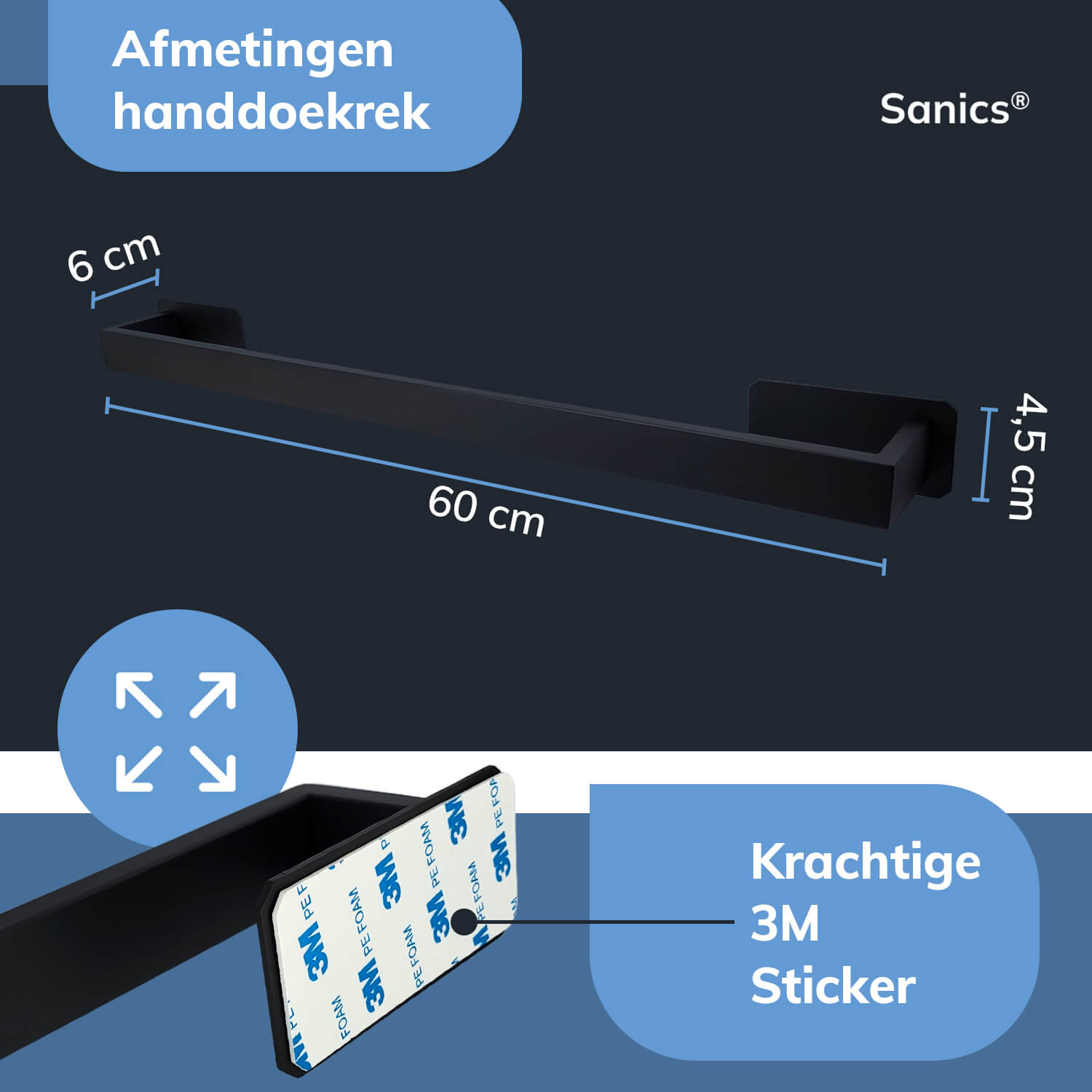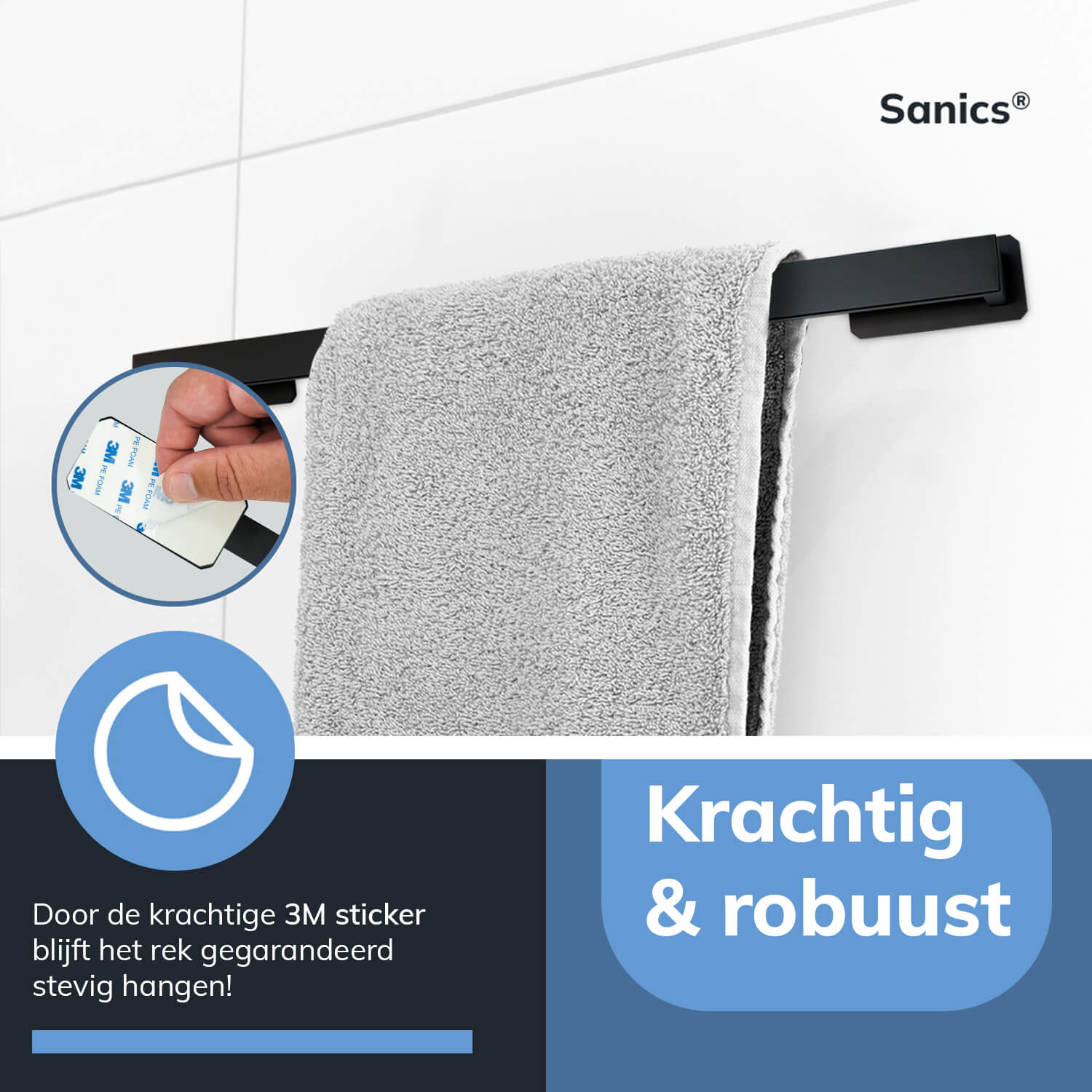 Wil jij ook je handdoekstang ophangen zonder je muur te beschadigen? Deze Sanics handdoekstang is door middel van de 3M-Sticker zeer eenvoudig te bevestigen. Door deze eenvoudige methode hangt je handdoekstang al binnen 1 minuut zonder dat je hierbij gereedschap nodig hebt! De stang blijft ook bij jarenlang gebruik stevig vastzitten.