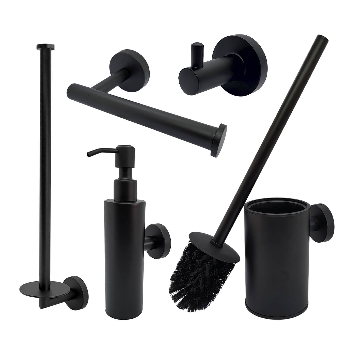 Sanics Toilet Accessoires Set Orca Zwart – 5-delige Badkameraccessoires Mat Zwart