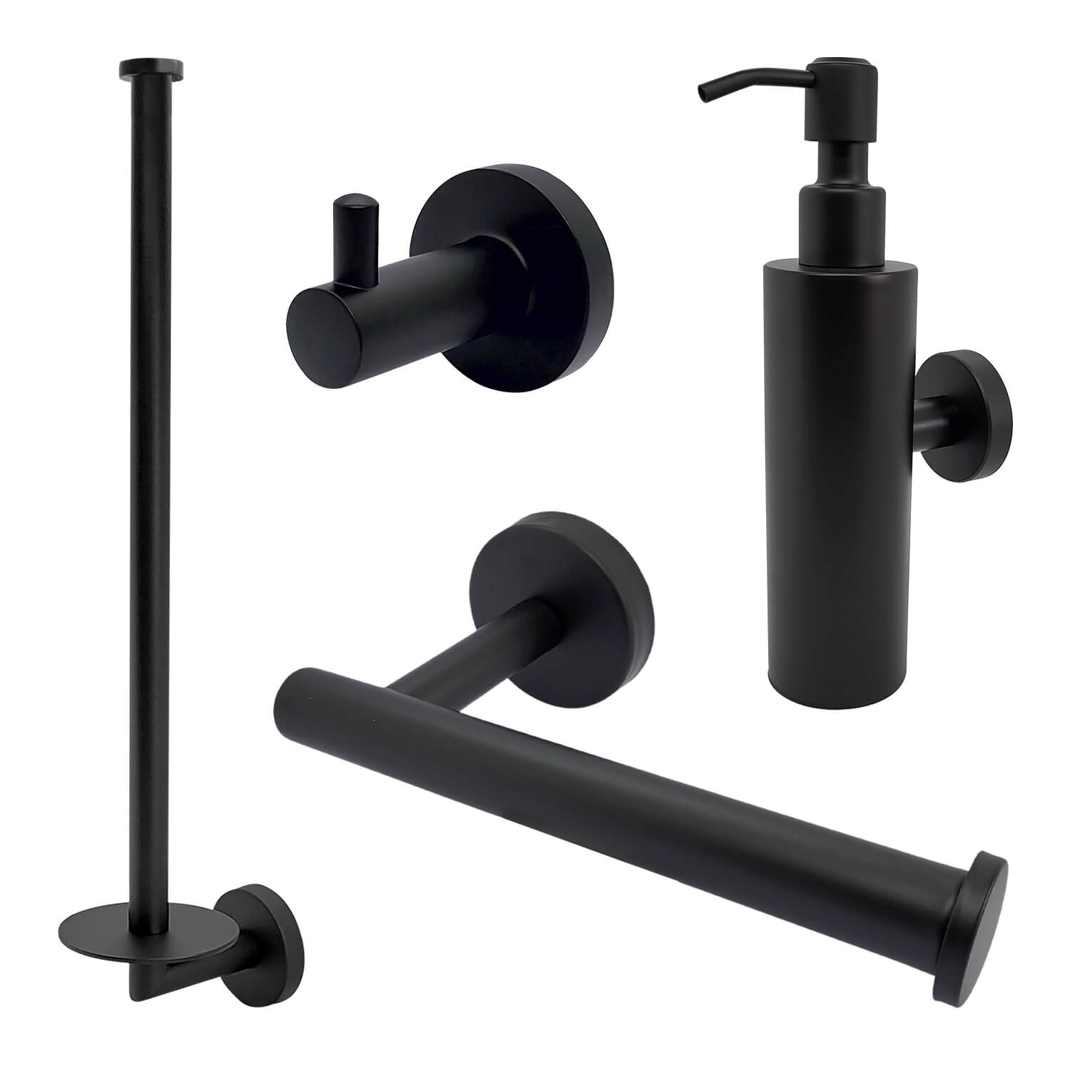 Sanics Toilet Accessoires Set Orca Zwart – 4-delige Badkameraccessoires Mat Zwart