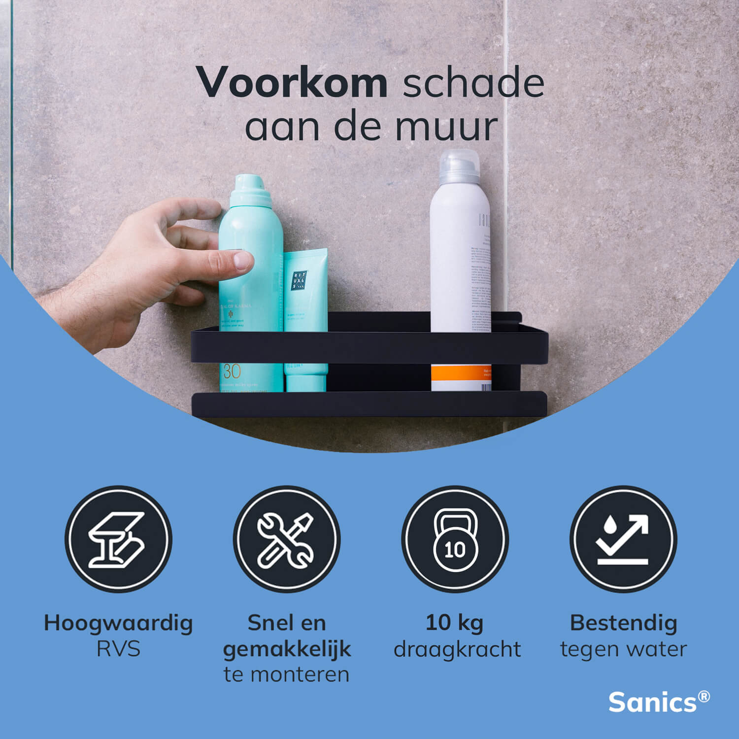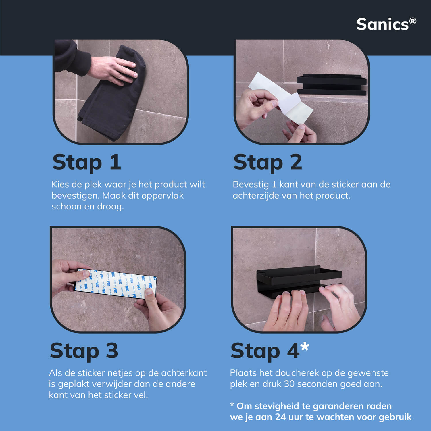 Wil jij ook iedere keer genieten van een luxueuze en ordelijke douche? Plaats dan nu het Sanics zelfklevende doucherek in je winkelmandje.
