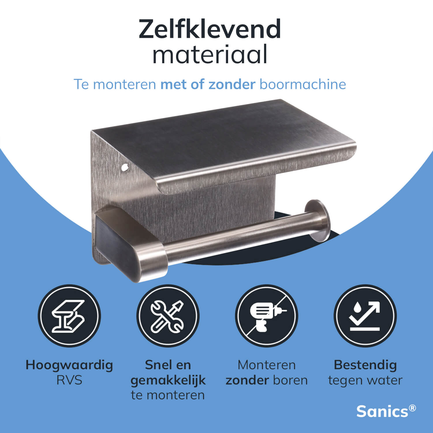 Je kent het vast wel, een toiletbezoek gaat tegenwoordig standaard gepaard met gebruik van jouw telefoon. Even snel jouw berichten beantwoorden of op sociale media kijken. Jij zal niet de eerste zijn waarbij jouw telefoon op de grond of in het toilet valt. Onze multifunctionele WC-rolhouder met plankje is hiervoor de oplossing! Vermijd schade en geniet van het gemak!