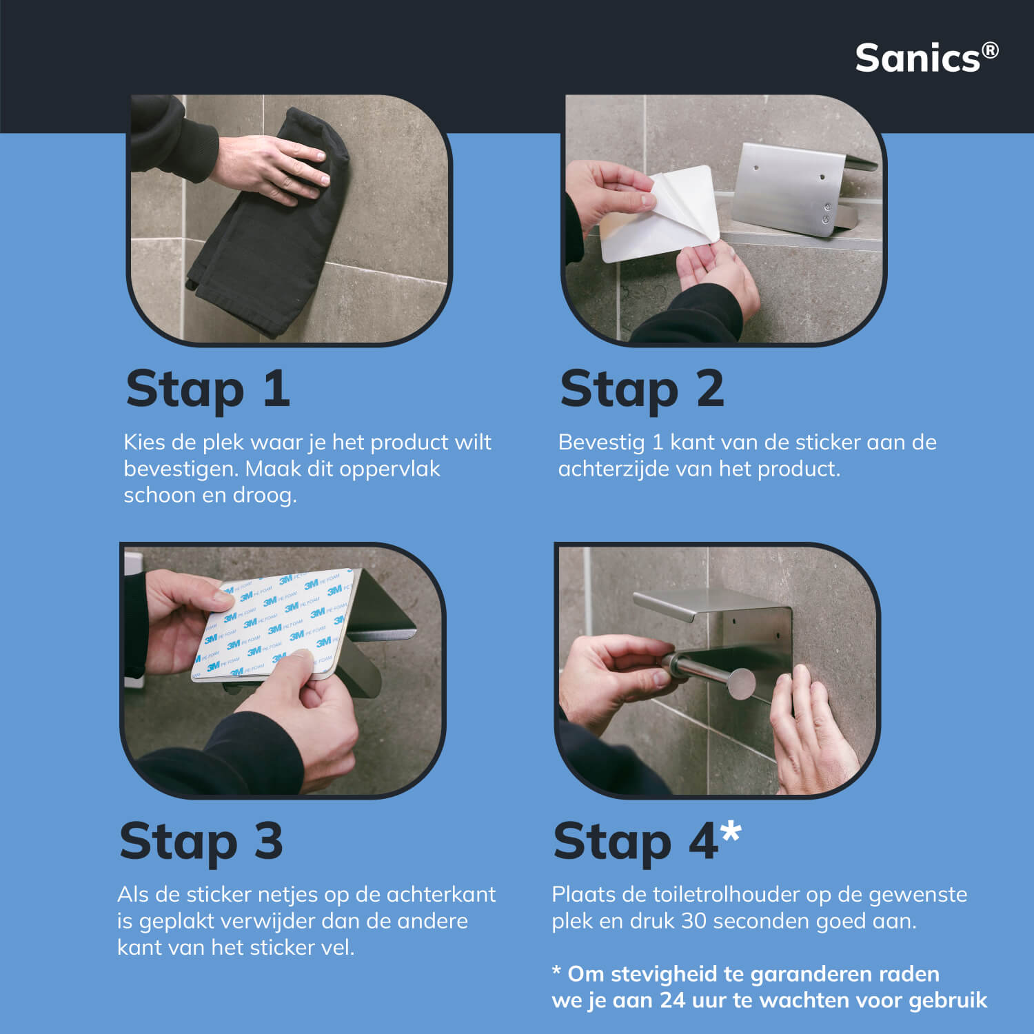- Zorg dat je de toiletrolhouder op een gladde ondergrond plaatst.