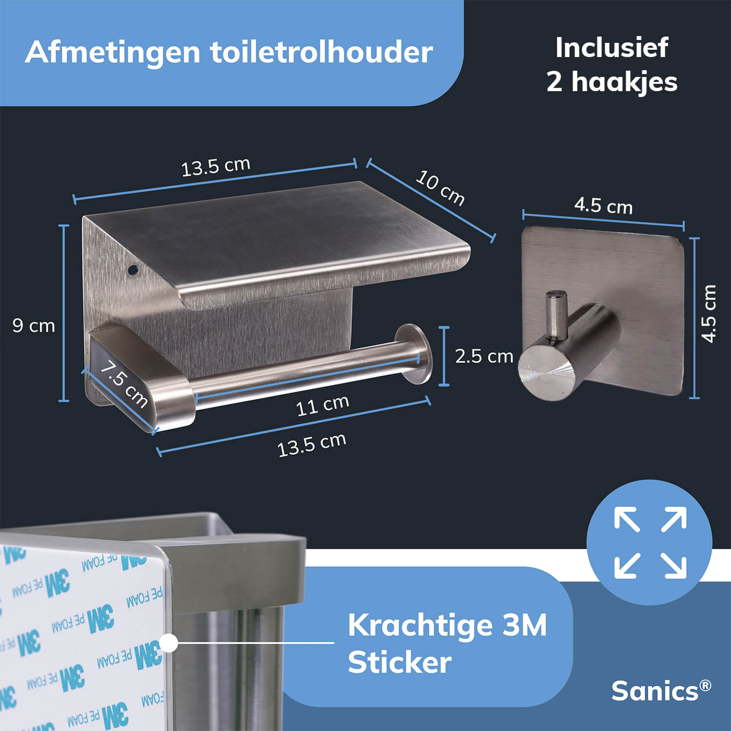 Je kent het vast wel, een toiletbezoek gaat tegenwoordig standaard gepaard met gebruik van jouw telefoon. Even snel jouw berichten beantwoorden of op sociale media kijken. Jij zal niet de eerste zijn waarbij jouw telefoon op de grond of in het toilet valt. Onze multifunctionele WC-rolhouder met plankje is hiervoor de oplossing! Vermijd schade en geniet van het gemak!