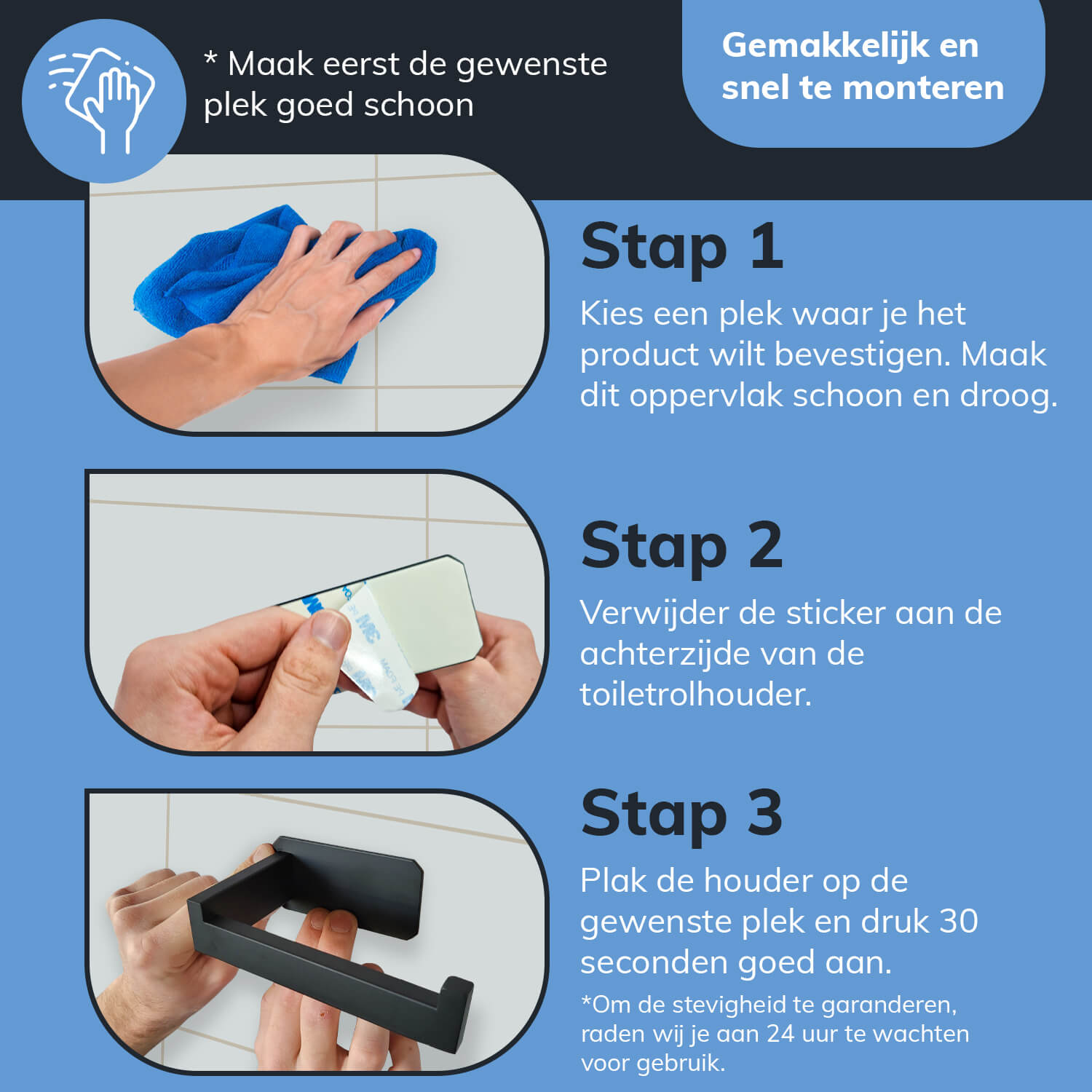 4. Na 24 uur wachten is de houder klaar voor gebruik!