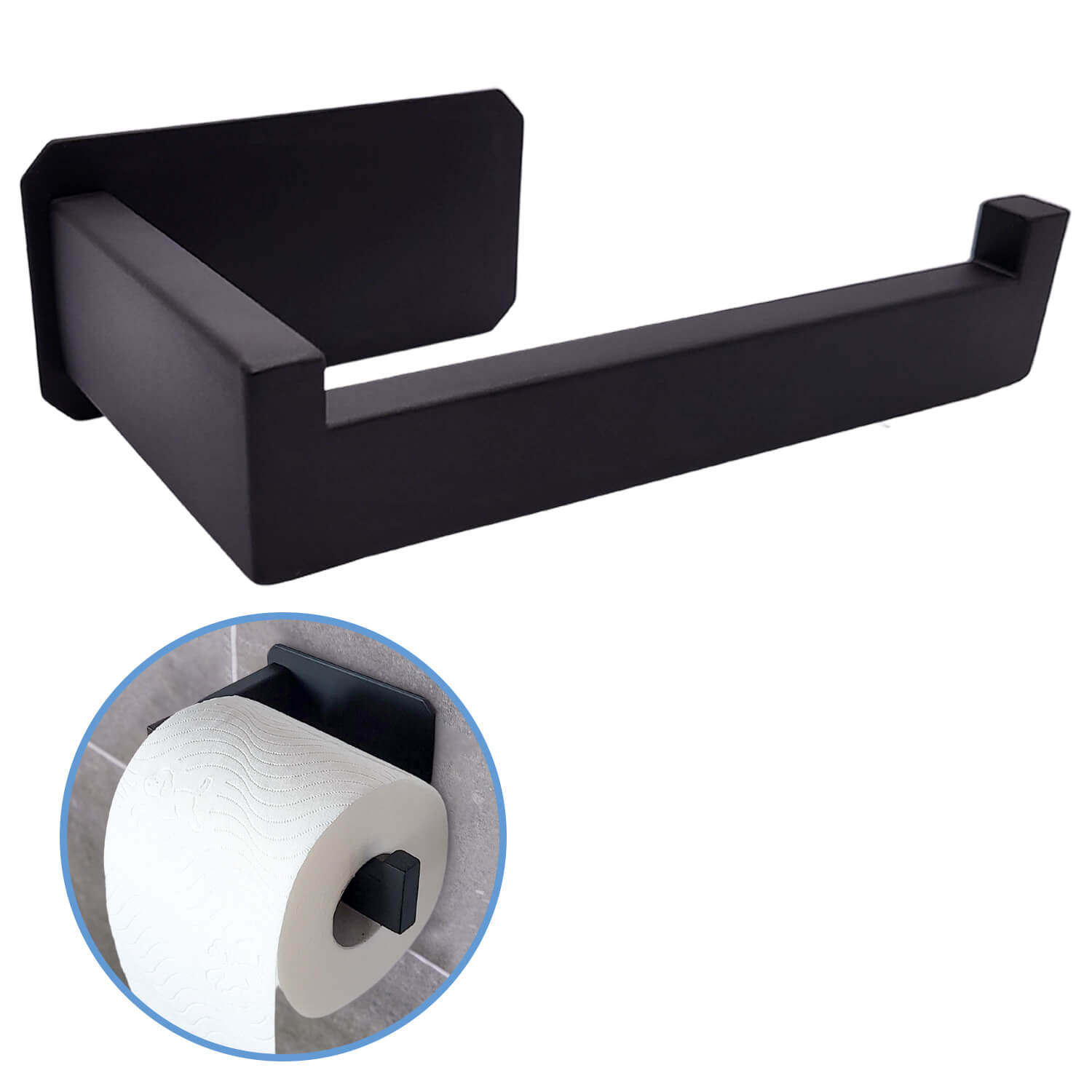 Manta WC Rolhouder Zonder Boren – Toiletrolhouder Zelfklevend – WC Papier Houder – Closetrolhouder Zwart/RVS
